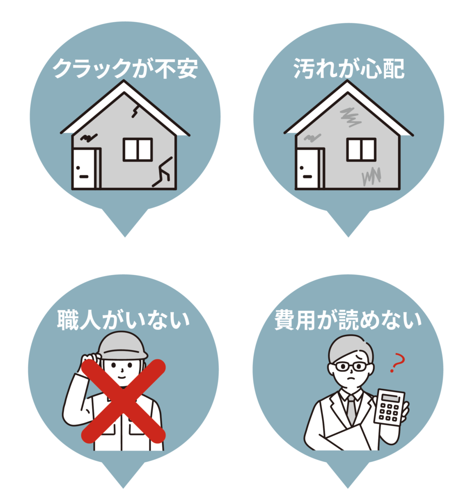クラック・汚れ・職人不足・コストの不透明さ。外壁に関するこれらの課題は、どれか一つではなく、すべてがつながっています。